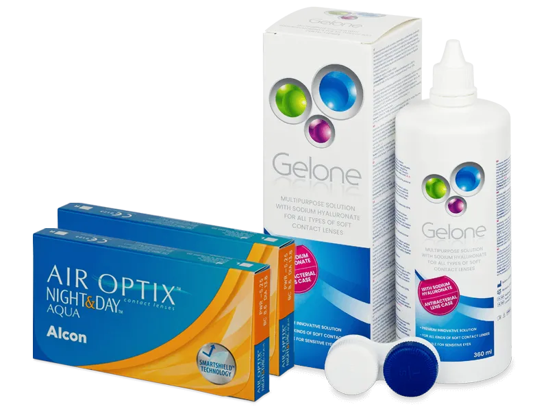 Air Optix Night and Day Aqua (2x3 čočky) + roztok Gelone 360 ml
